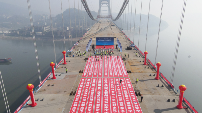 3月15日,隨著最后一節(jié)段鋼桁梁S8的成功吊裝,全國最大跨度公軌兩用懸索橋——重慶郭家沱長江大橋成功合龍,該橋采用巨力索具預(yù)應(yīng)力錨固系統(tǒng)。郭家沱長江大橋項目是重慶市級重點(diǎn)工程,也是重慶快速路“六縱線”跨長江節(jié)點(diǎn)工程。該項目線路北起江北郭家沱,南接南岸峽口鎮(zhèn),全長6.2公里,由花紅灣立交、郭家沱長江大橋、峽口立交三部分組成。