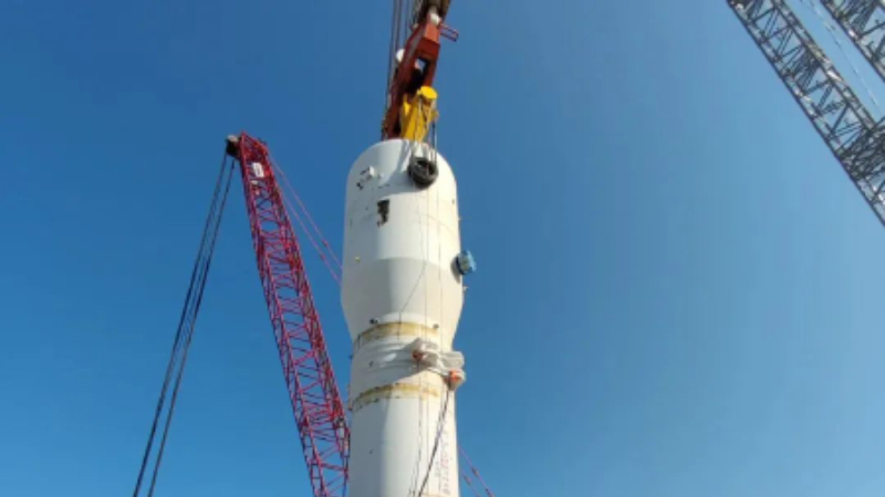 8月19日9時(shí)18分 華能山東半島南4號(hào)海上風(fēng)電項(xiàng)目 順利完成首臺(tái)風(fēng)機(jī)“整體”吊裝 開創(chuàng)了國(guó)內(nèi)海上風(fēng)電實(shí)施5.0兆瓦以上 單樁基礎(chǔ)風(fēng)機(jī)整體吊裝先河