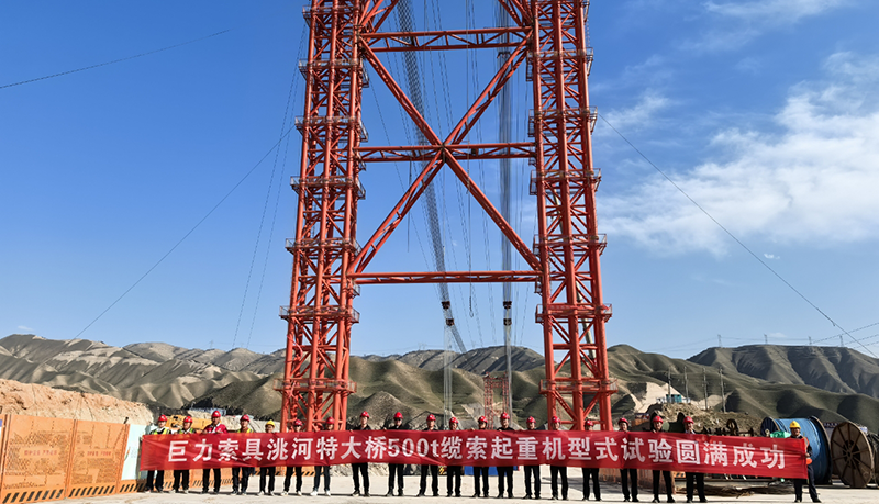 蘭永臨高速公路關鍵控制性工程洮河大橋500噸大型纜索吊裝系統試吊完成,標志著我國西北地區在建最大上承式鋼管混凝土拱橋建設取得關鍵突破,巨力索具吊裝系統成功為大橋主體施工按下“加速鍵”,大橋正式邁入主體結構施工階段。