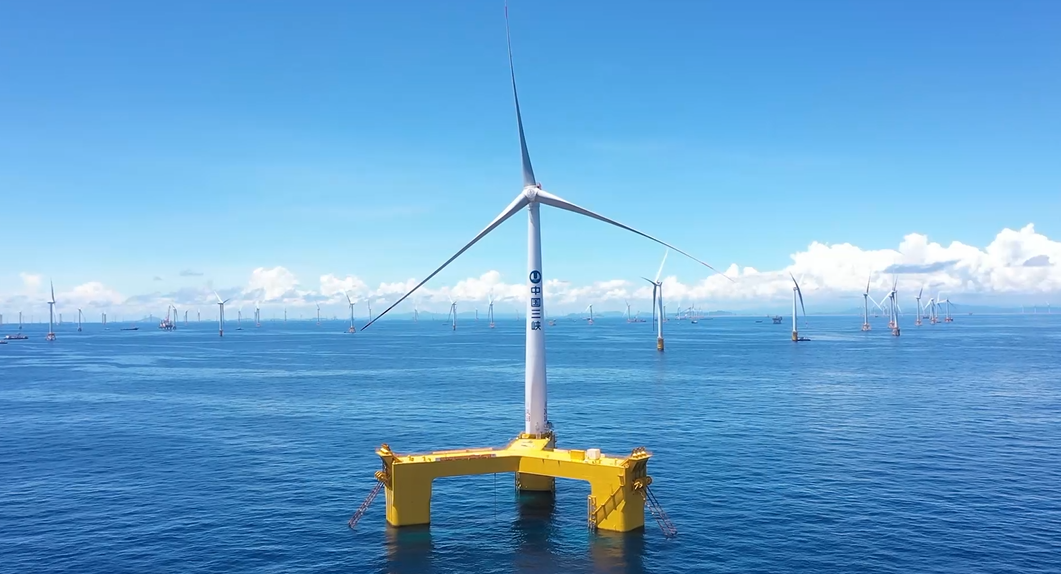12月7日13時37分,全球首臺抗臺風型漂浮式海上風電機組,在廣東陽江海上風電場成功并網發電。
