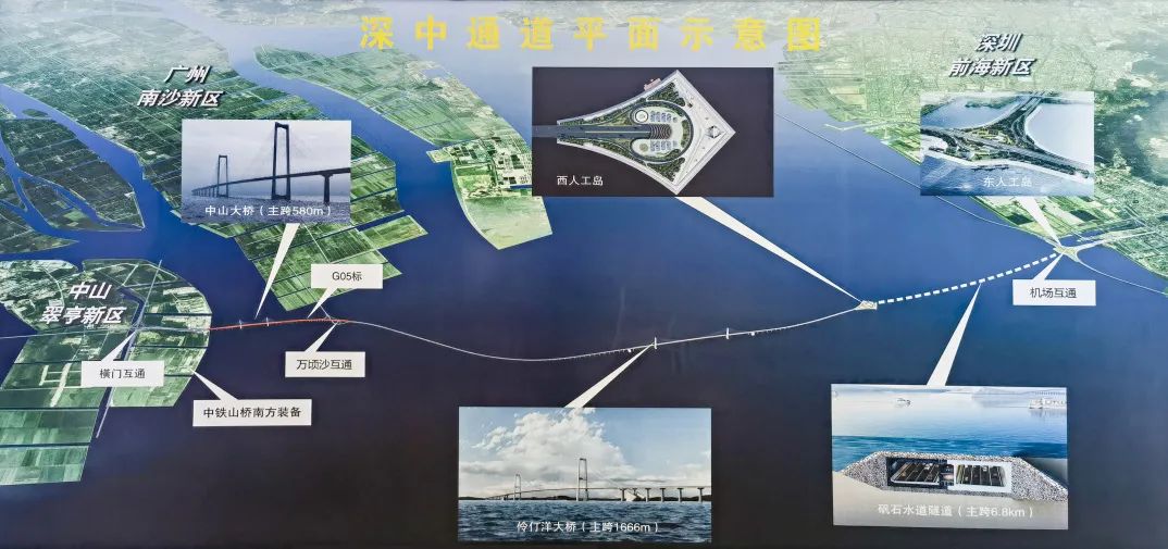 深中通道是集“橋、島、隧、水下互通”為一體的世界級跨海集群工程,全長24公里。其中,橋梁工程長約17.2公里,其關鍵控制性工程為主跨1666米的伶仃洋大橋與主跨580米的中山大橋。