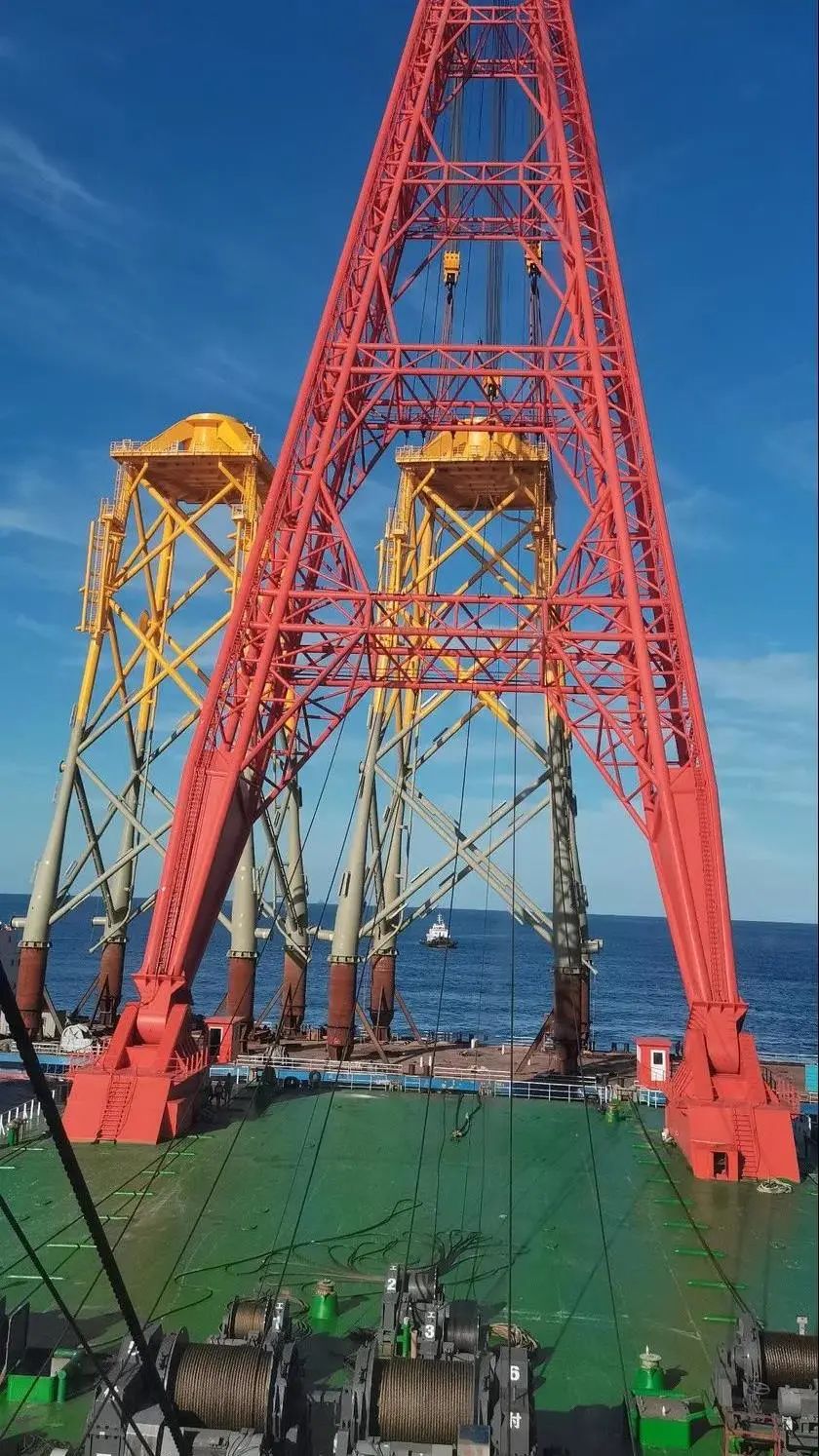 近日,惠洲海域亞洲第一吊高“秦航工2300”自航起重船初試鋒芒,成功吊裝惠州海域風場今年首根鋼結構導管架。