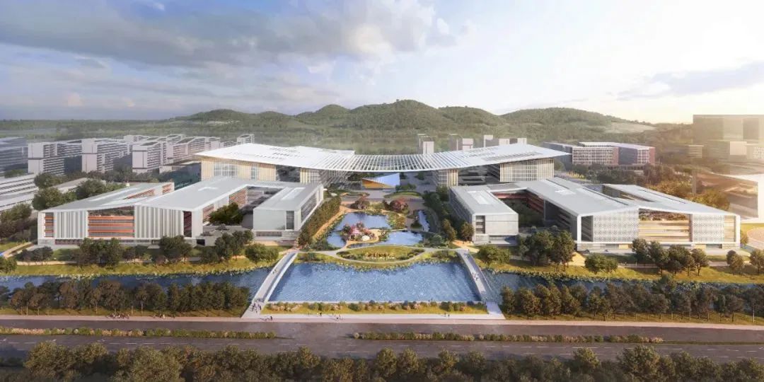 基座由行政樓、圖書館、音樂廳、發(fā)展用房和公共教學(xué)樓組成,統(tǒng)稱為“中心組團(tuán)”,是校內(nèi)的研究和學(xué)習(xí)中樞。大屋面鋼結(jié)構(gòu)體系,由北區(qū)鋼桁架體系、中央?yún)^(qū)懸鏈線索結(jié)構(gòu)和南區(qū)鋼桁架體系組成,鋼結(jié)構(gòu)總量約8000噸。